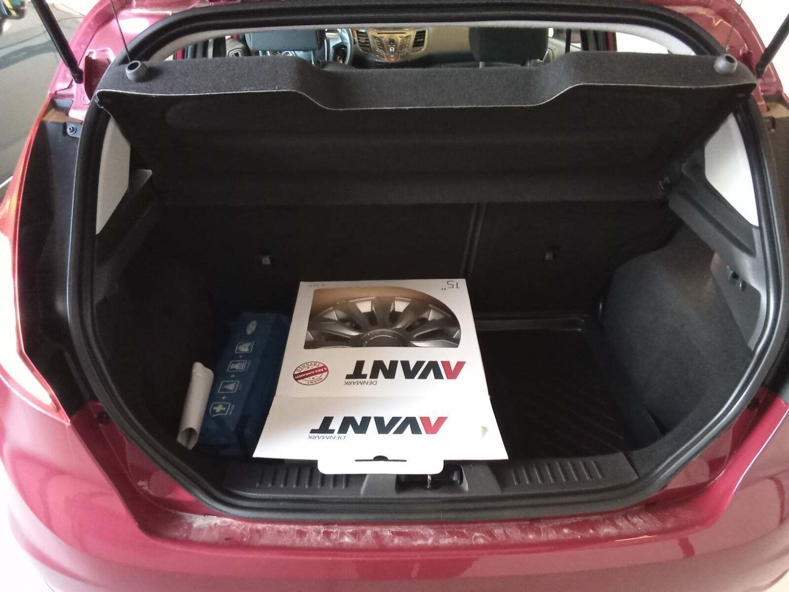 Fiesta - Dæktrykovervågning, Fiesta - Radio/CD-afspiller, Fiesta - Fjernbetjent centrallås, Fiesta - ESP inkl. bakkestart-assistance, Fiesta - Opvarmede forsæder, Fiesta - MyKey - indstilling af tophastighed og maksimal lydstyrke på audiosystemet, Fiesta - 15" stålfælge med 12-egede hjulkapsler, Fiesta - Karrosserifarvet for- og bagkofanger, Fiesta - Forsinket slukning af forlygter, Fiesta - Elektronisk servostyring, Fiesta - Front-, side- og gardinairbag samt knæairbag til fører, Fiesta - ABS-b, multifunktionsrat, aircondition, el-ruder, sædevarme, fjernb. centrallås, 4 airbags, automatisk lys, isofix